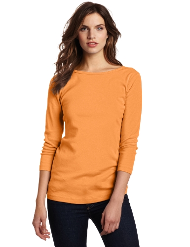 What do you think about Three Dots Red Women's Classic Fit 3/4 Sleeve British Tee, Orange Creme, Medium?